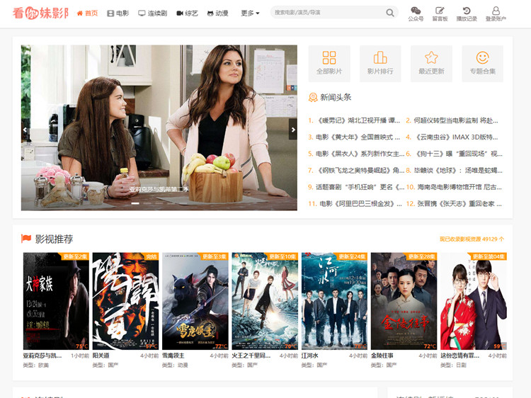 简约白苹果CMS影视网站源码 V10 自适应手机模板的大图展示