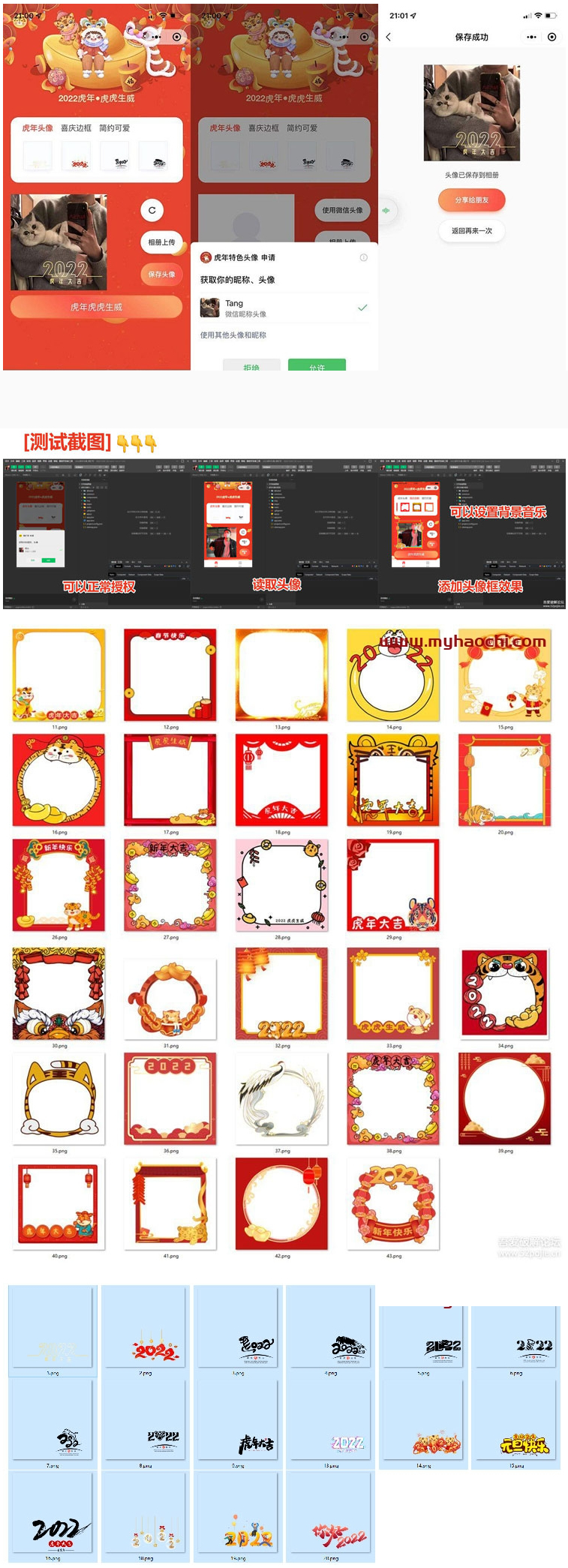 2022全新虎年背景头像框自动生成微信小程序源码的大图展示