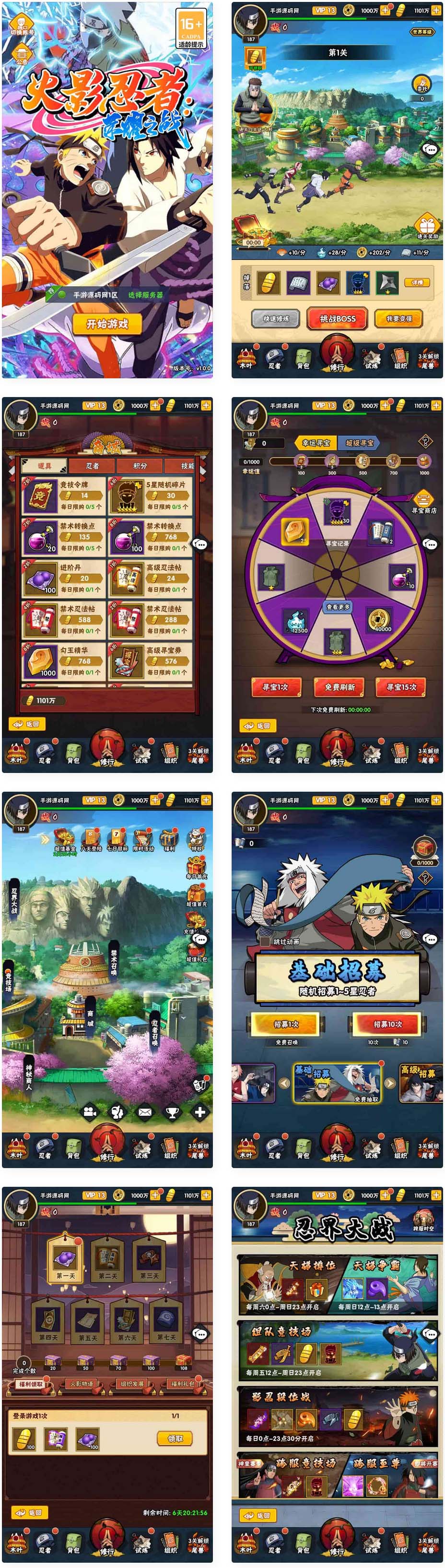 新火影忍者之荣耀之战_稀有卡牌回合剧情手游_Linux服务端_通用视频教程_多功能GM网页后台_安卓苹果IOS双端的大图展示