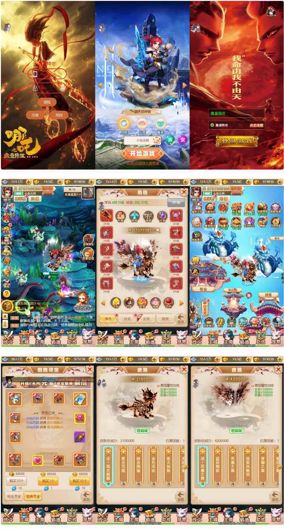 哪吒之魔童降世H5,三网H5手游换皮版本,提供VM镜像单机一键端和Linux学习手工服务端的大图展示