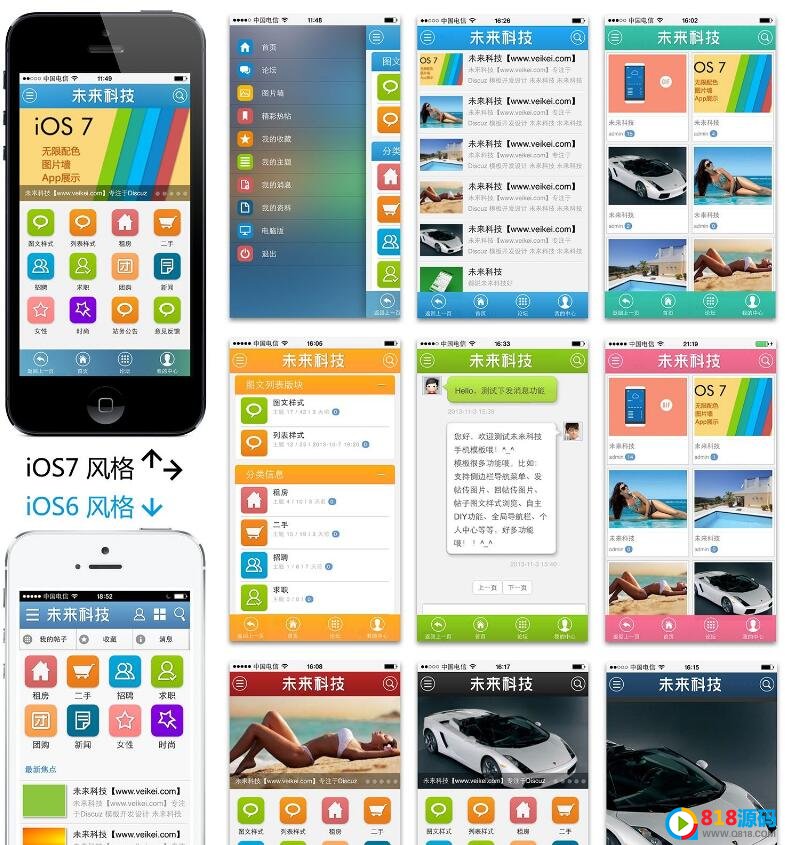 13、充分考虑到视网膜屏幕,模板图片调用做了普屏、高清屏双重技术支持处理;