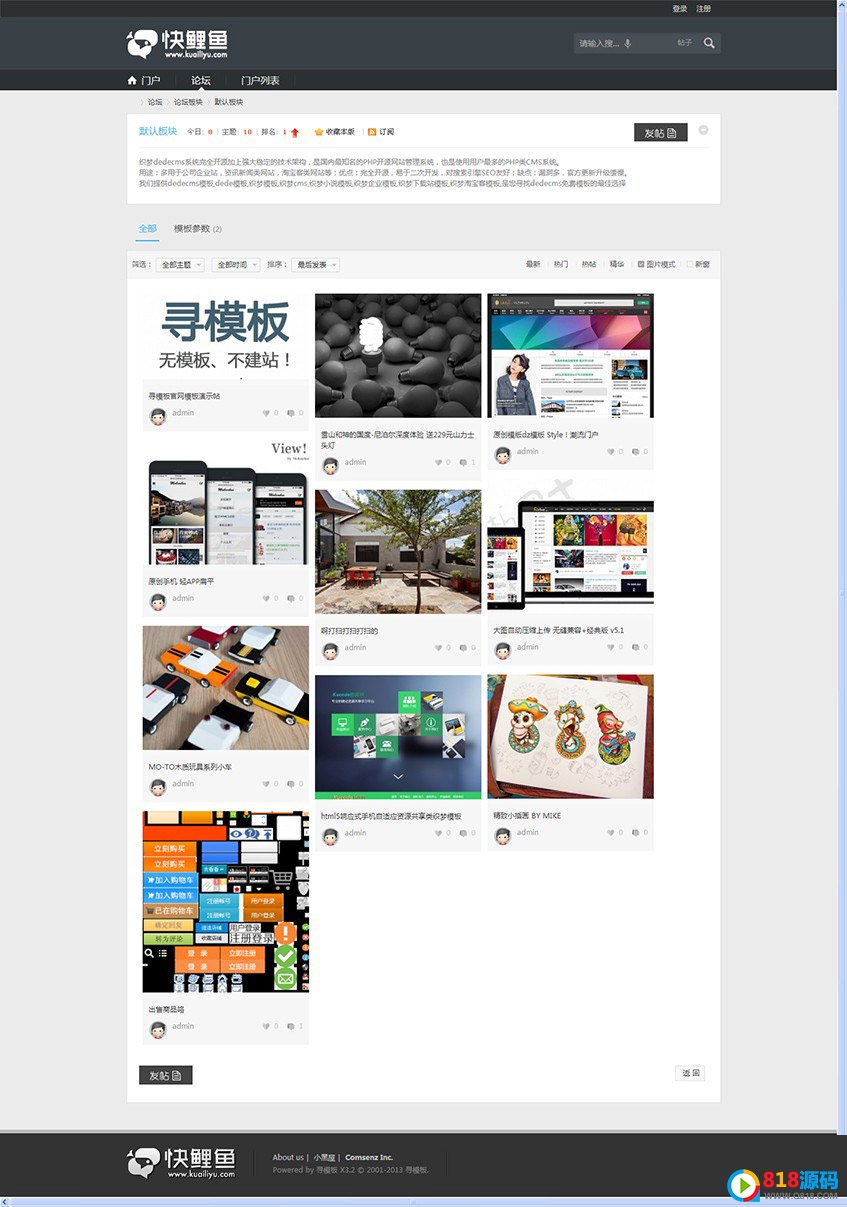 快鲤鱼模板整体布局排版采取了简约而不简单的设计理念,模板基于discuzX系列制作而成,兼容X3 X3.1 X3.2的GBK版本需要UTF8请在寻模板搜索教程进行学习转码