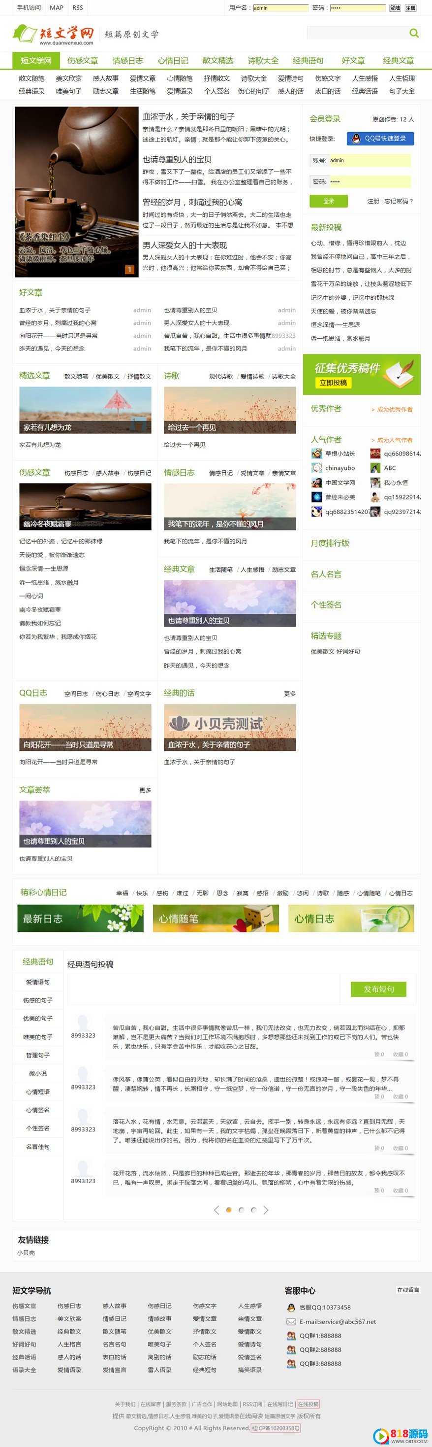 帝国CMS7.0小说类网站模板下载【仿短文学网】,由帝国CMS7.0版本开发