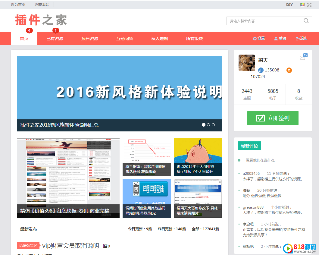 功能三、插件之家仿制的支持栏目显示当天帖子数