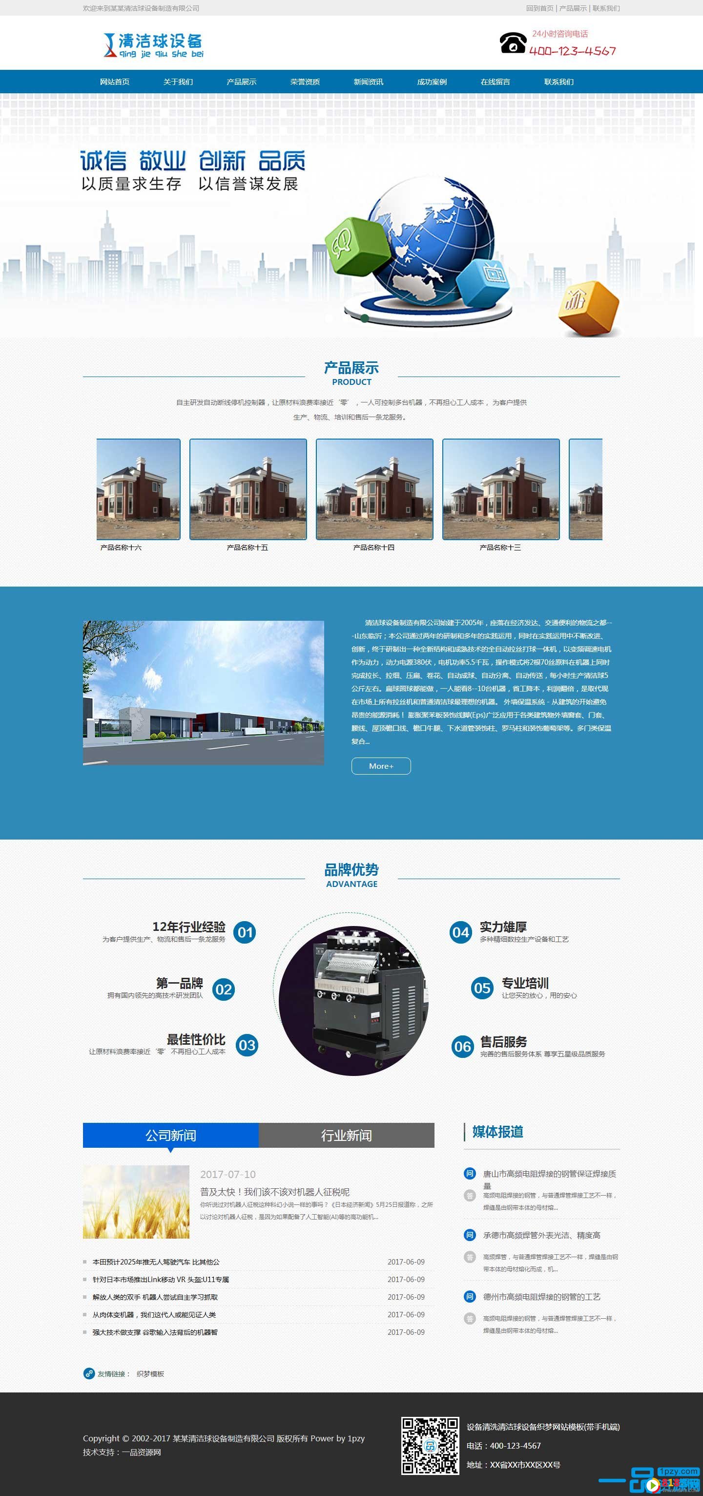 设备清洗清洁球设备织梦网站模板(带手机端),测试完整无错,兼容主流浏览器。支持后台直接修改网站信息,采用独立手机端设计支持各种移动设备,同一个后台,数据即时同步,简单实用。本套模板为UTF8需要GBK可在本站查看编码转换教程。