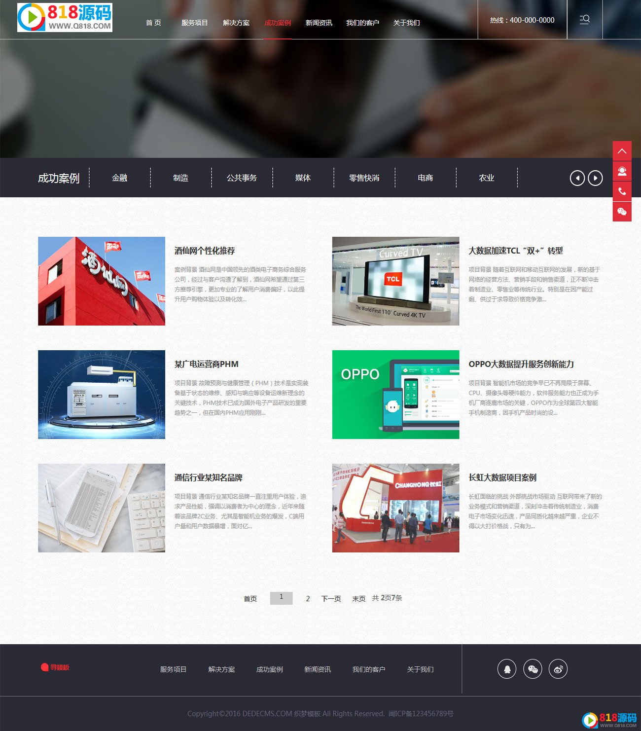 2:首页带炫酷的幻灯片,新闻展示,服务介绍,案例展示等。
