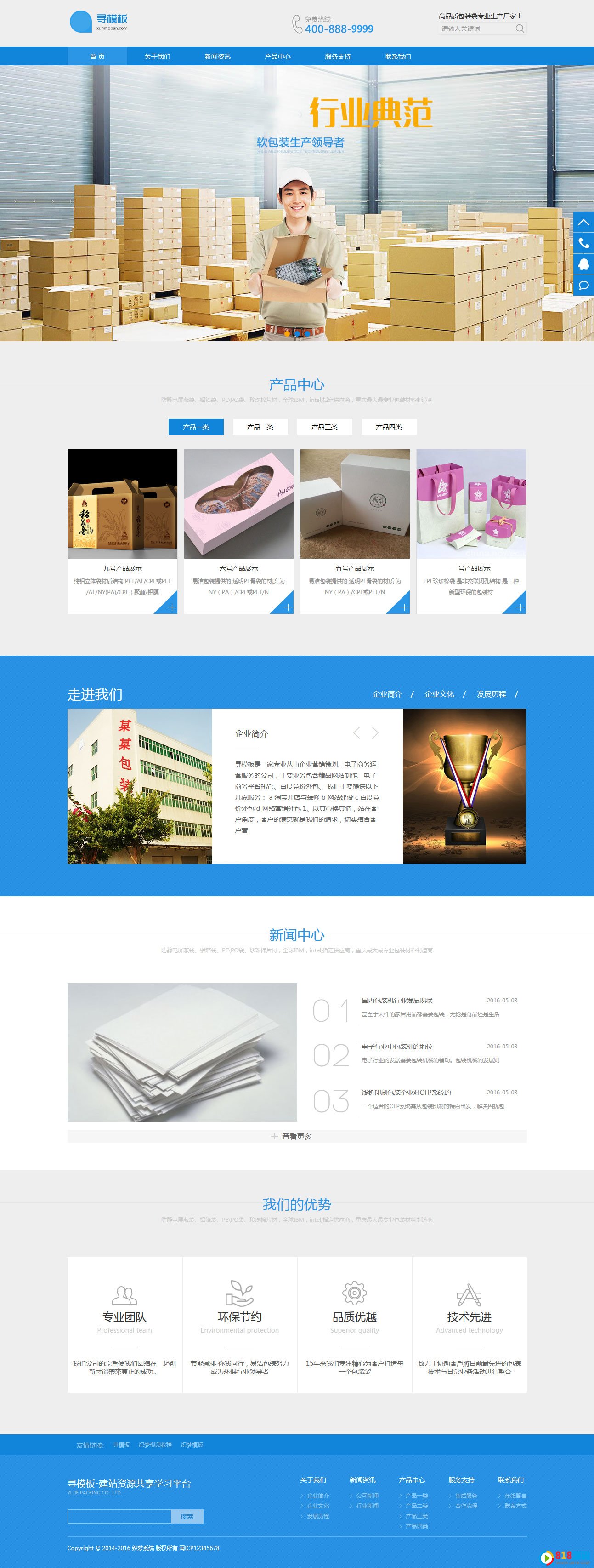 这是一套不错的,印刷设计类的企业模板,整站宽屏设计,采用html+css设计,模板采用蓝配色