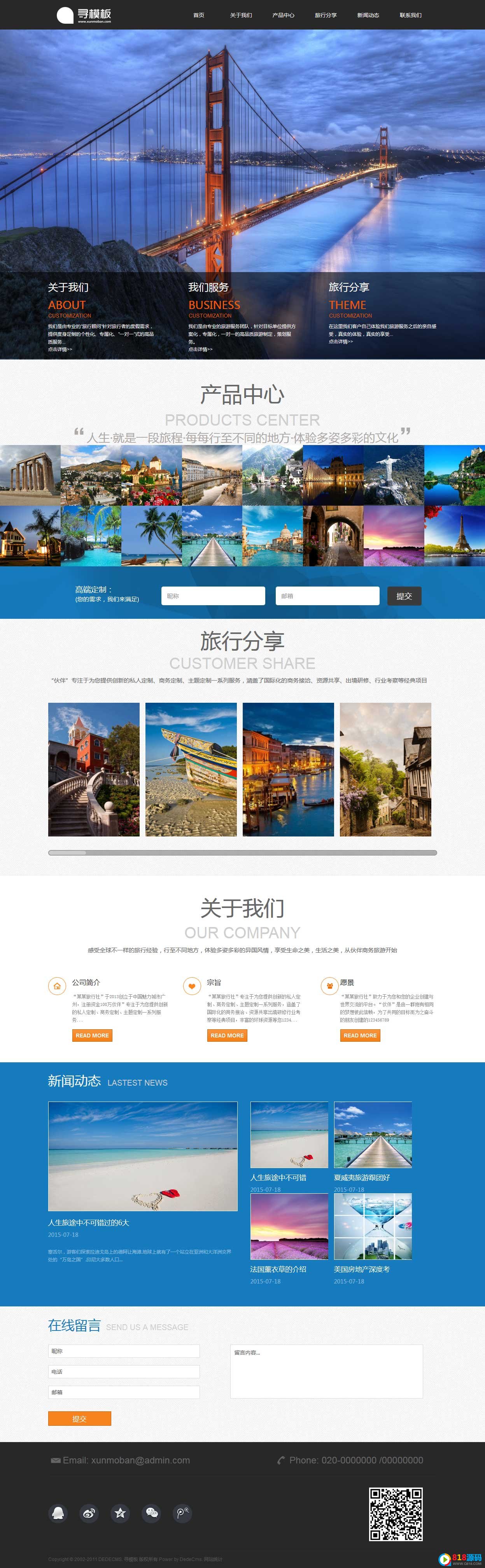 织梦织梦dedecms蓝色旅游/旅行社企业模板,本套模板几乎适合所有的旅游,旅行行业使用,整站带数据。带安装说明,模板整体页面干净清晰,简洁,如果您是找旅游行业的模板,那么或许这套模板会比较适合你,模板带安装说明,带测试数据,修改简单,轻松就能搭建自己的网站。