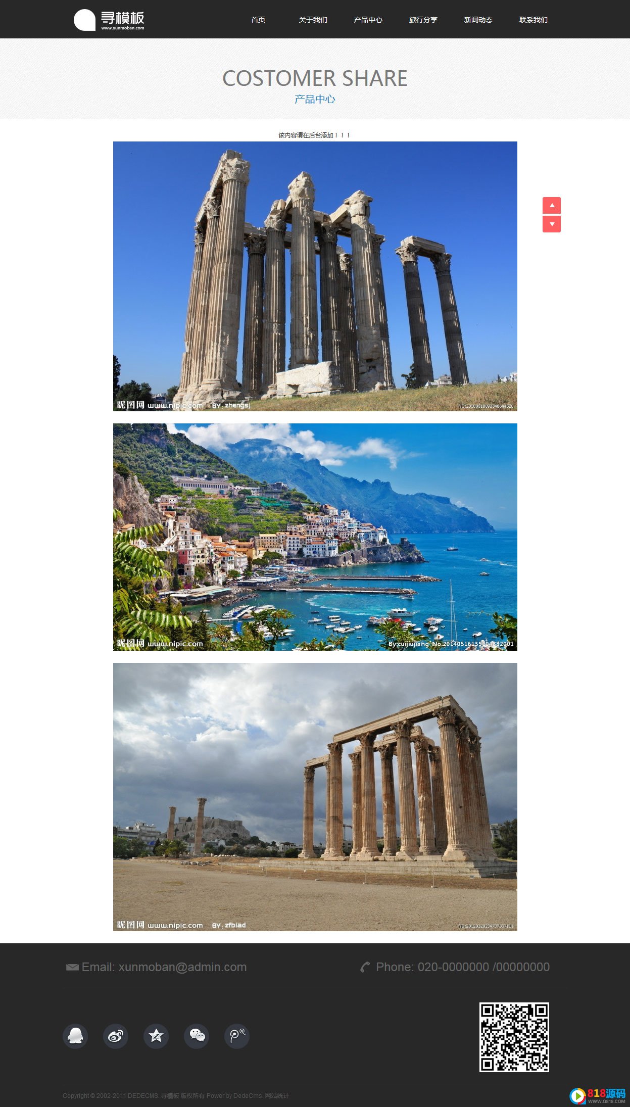 4:各个栏目设计简单,并已经进行代码优化,只要在后台修改相应的内容就能轻松实现修改网站内容。