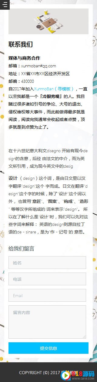 此套模板是一套非常优雅大气的产品包装设计类响应式模板,此套模板干净漂亮,采用侧边导航,加多彩的图片元素,使得整个模板活灵活现