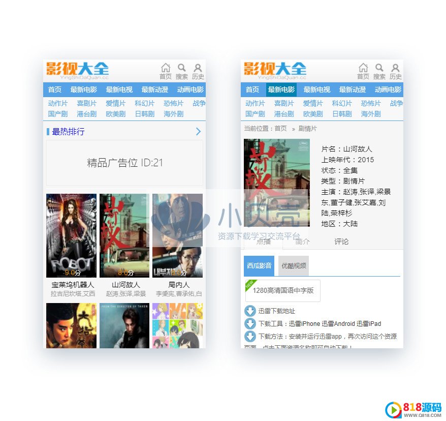 2、此套影视大全源码包括手机端,手机端和PC端可以同步更新,插件已经可以用了。