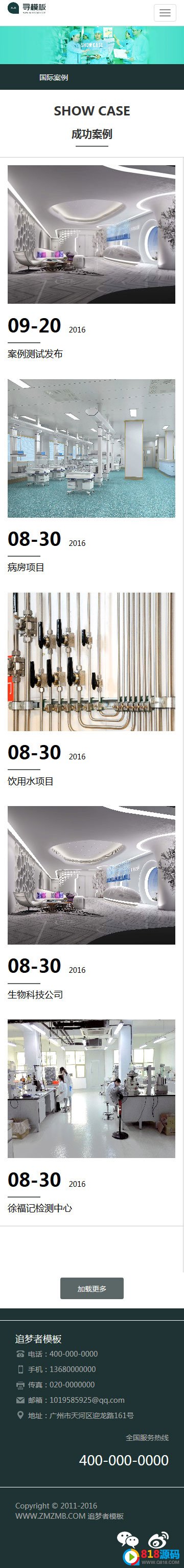3:模板采用主流的HTML5框架编写,移动终端自适应,完美支持移动设备浏览,解决了移动端流量丢失的难题。