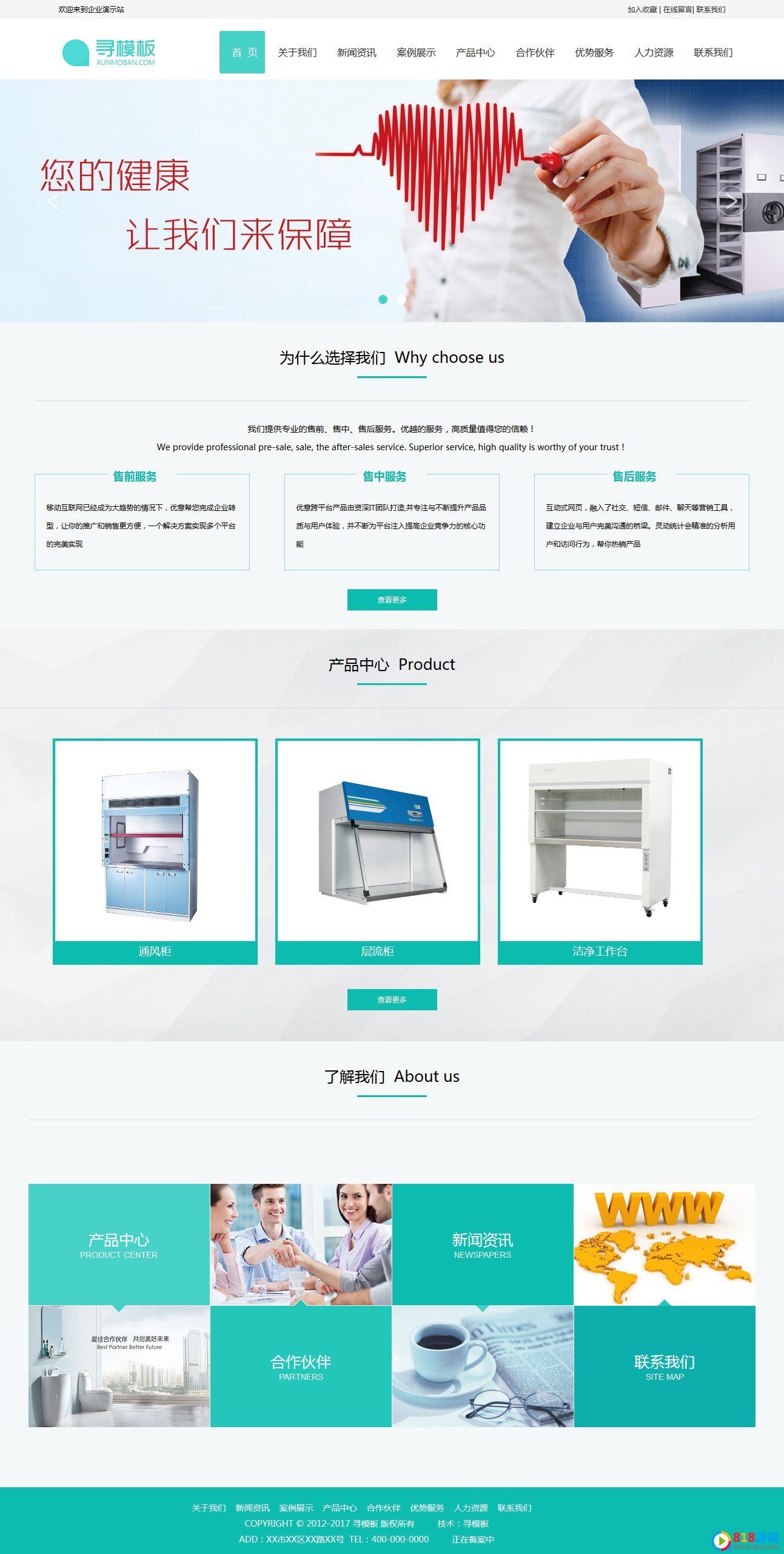 此套模板适合医疗机构设配类企业公司网站使用,涉及的展示页面也非常的多,页面整体简洁简约,jquery特效运用的不是很多,但是足够一个企业网站使用的标准