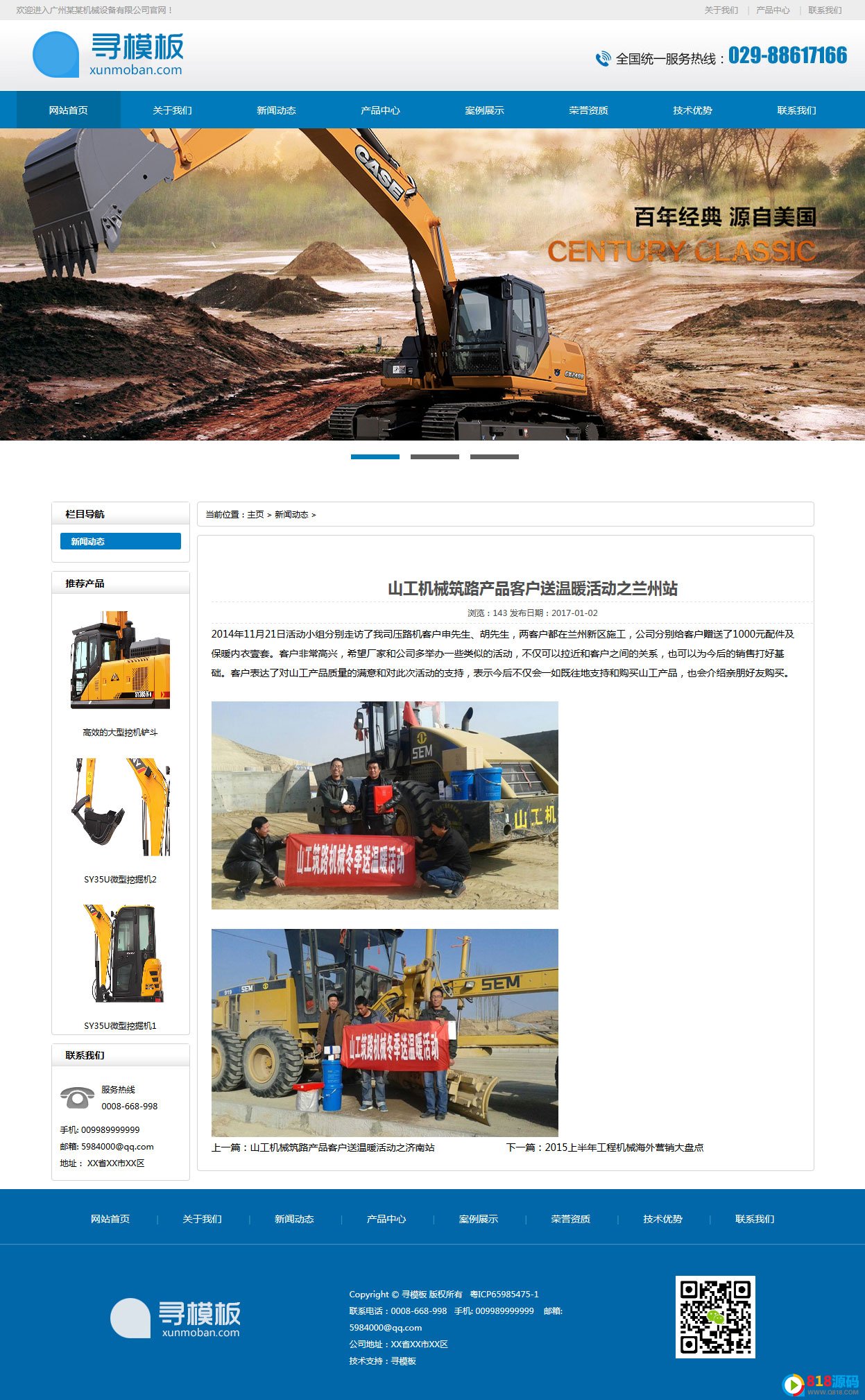 大型工业机械挖机设备产品展示网站模板(带手机端)模板简洁大气,全局幻灯片,网页模板布局清晰,特色,非常符合一个企业建站的标准,使用方便,已添加演示数据,下载后按照教程安装即可使用!