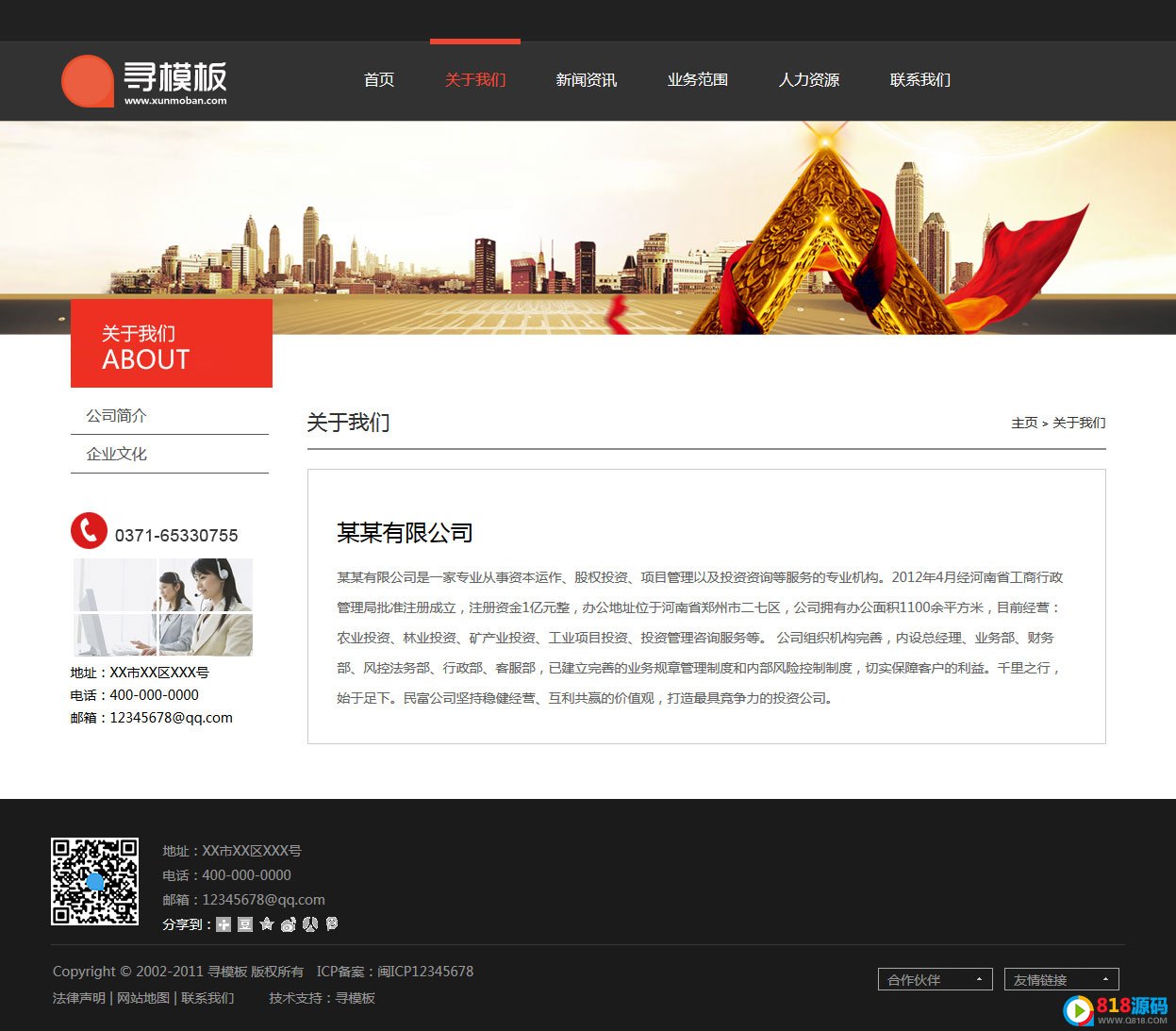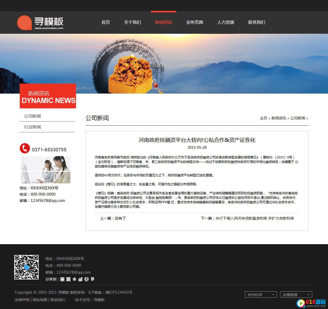 织梦黑色金融服务行业公司企业网站模板,整体配色采用了非常大气的黑色 ,首页布局非常的带感,下面的新闻版块可以切换,增加了展示信息的数量,栏目页包含了关于我们,新闻资 讯,企业文化,业务范围,人力资源,联系我们。基本上企业常用的一些栏目我们都已经做好了,而且代码非 常的精简,适合ESO优化。模板基于DEDE CMS 最新版本5.7 UTF-8设计,5.5以上的版本应该都能使用。如果是GBK请自行转换编码。该模板是整站源码,带测试数据,安装说明,安装非常方便,只需要在后台更改栏目为自己的信息就能轻松搭建自己的网站。