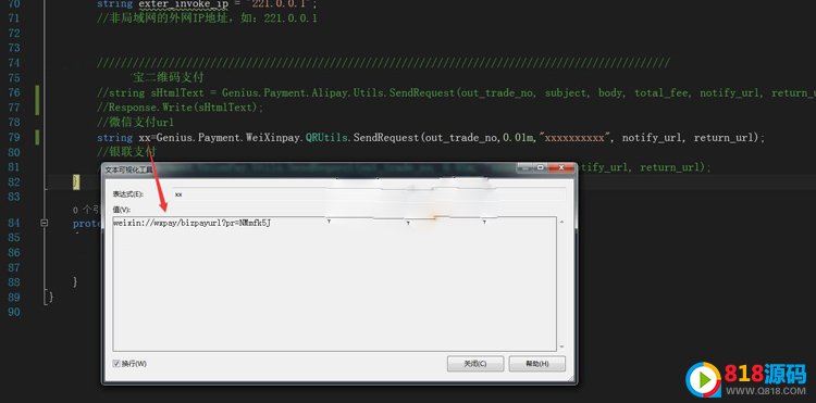 Genius.Payment.WeiXinpay.QRUtils.SendRequest(out_trade_no,0.01m,”xxxxxxxxxx”, notify_url, return_url);