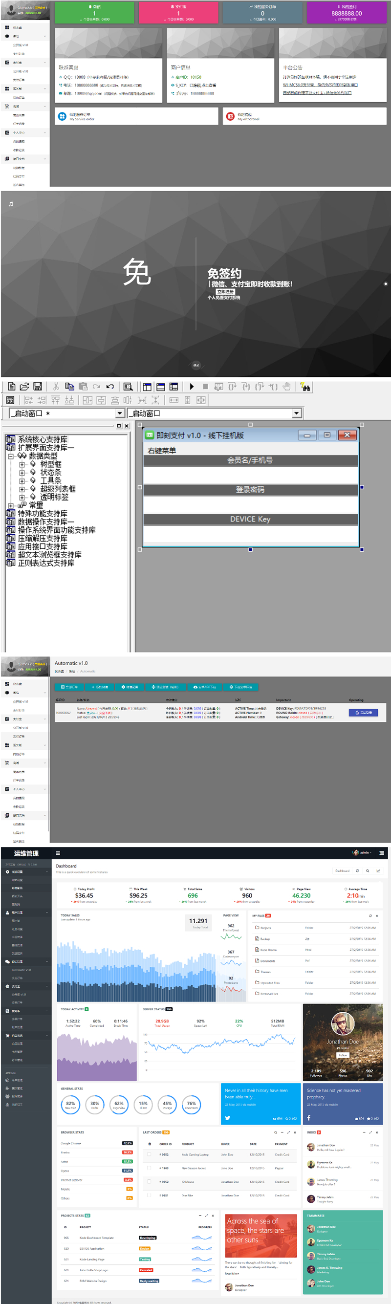 1、开户,收取开户费,后端增加会员,设置费率,还可设置用户通道数量;