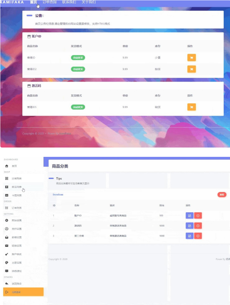 适用于各种电商、优惠卷、论坛邀请码、充值卡、激活码、注册码、腾讯爱奇艺积分CDK等,支持手工和全自动发货,还有类似1688的分层批发模式。
