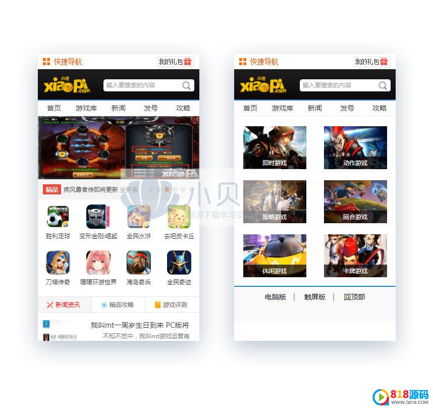 小皮游戏网源码是一套非常棒的92Game开发的源码,包括几个大的功能板块 【游戏下载】【礼包领取】【新闻资讯】【图片分享】,每一个板块都可以当成一个独立的网站使用,源码非常棒,此套源码是帝国CMS开发的游戏源码中的佼佼者。