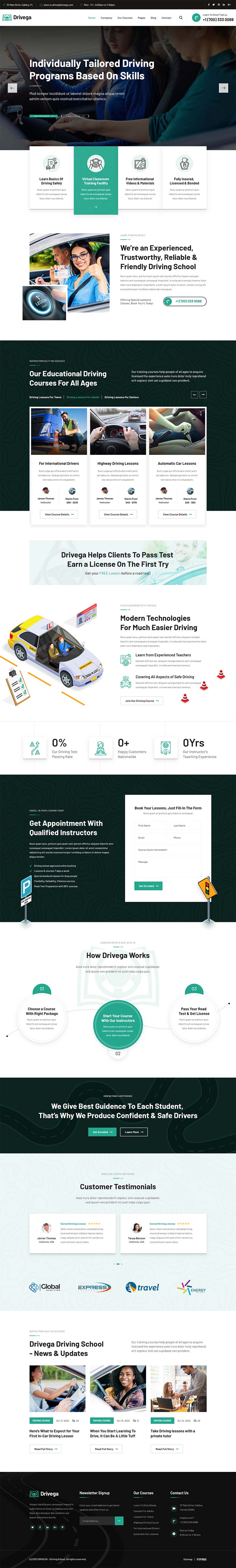 绿色汽车驾校培训企业官网静态HTML模板